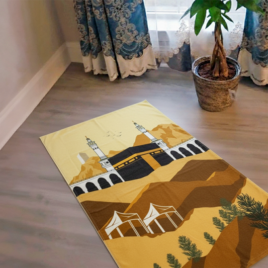 سجادة صلاة مطبوعة بتصميم الكعبة | مستوحاة من مكة المكرمة مع علبة