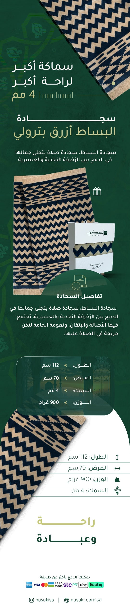 This mat is a beautiful design with attractive color, You can use this prayer mat for the mosque or home. A prayer mat where the Aseri and Najdi decoration create a traditional artwork. It is made of soft and comfortable fabric.