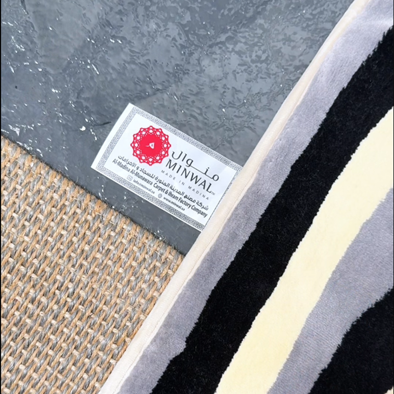 It is crafted at Minwal factory in Al-Madinah Al-Munawarah, specialized in carpets and Ihrams, using the finest threads with high precision.