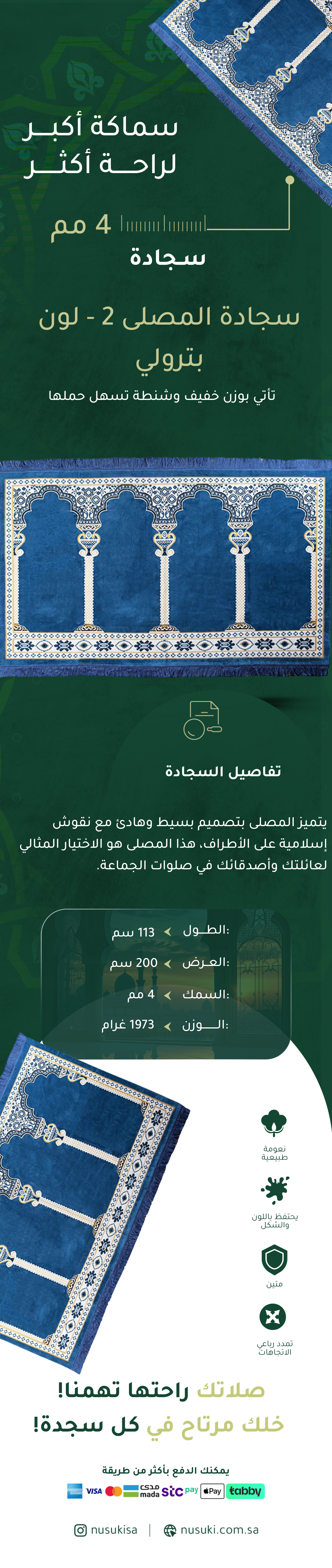Musalla Mat is a prayer mat featuring a quiet simple design with an Islamic pattern on borders. This is your perfect choice for your family and friends gamáa prayers .