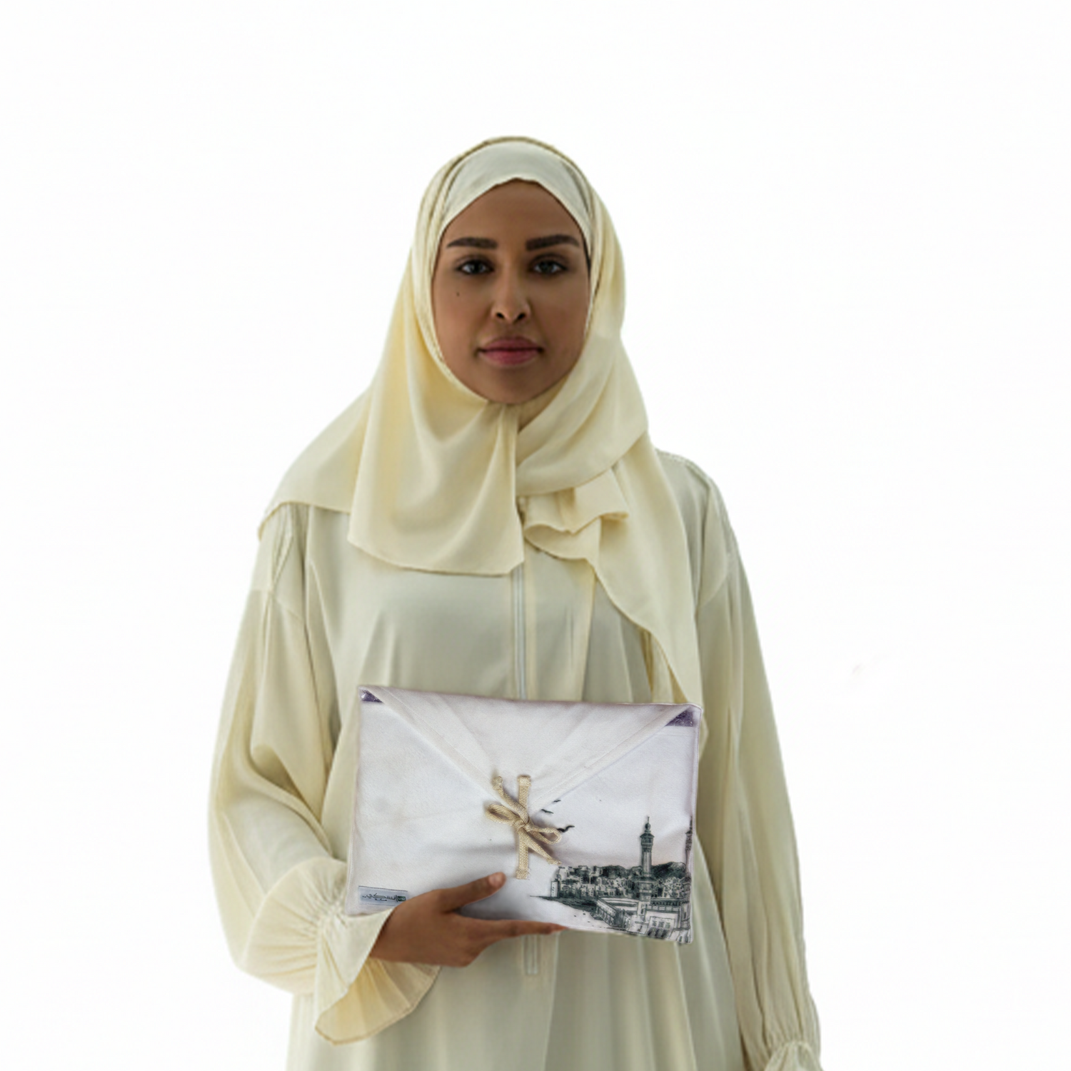 The prayer dress comes with a stylish fabric bag designed with the same simplicity and practicality.