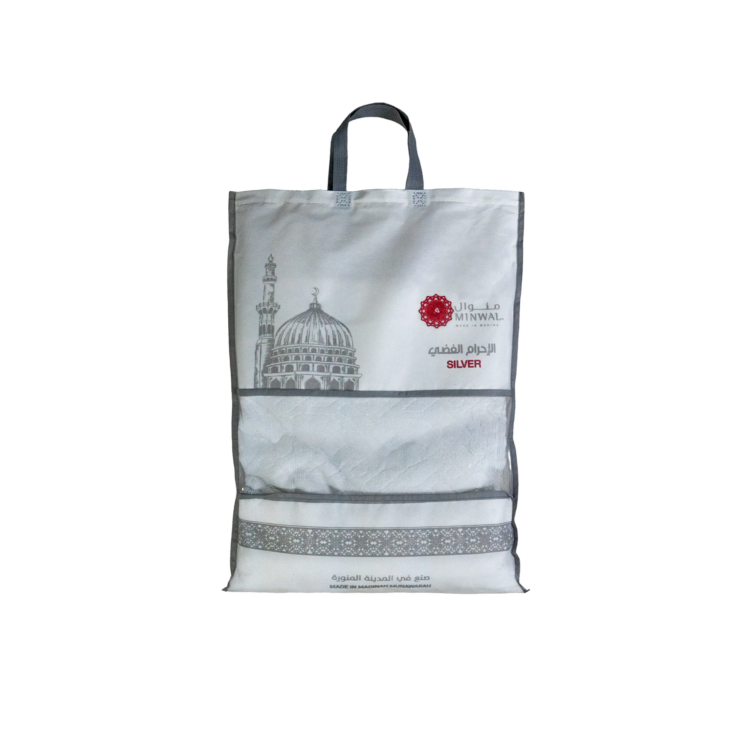 It is crafted at Minwal factory in Al-Madinah Al-Munawarah, specialized in carpets and Ihrams, using the finest threads with high precision.