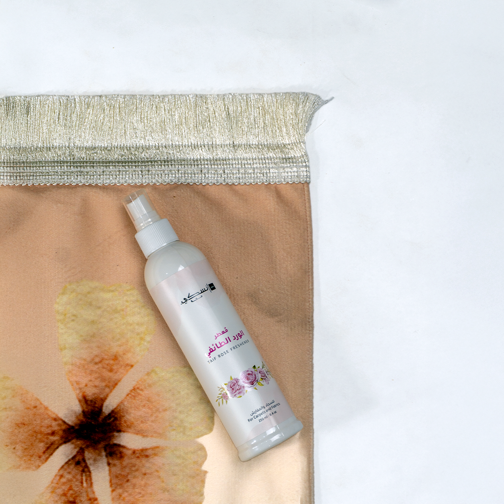 Nusuki’s Taif Rose Freshener captures the authentic aroma of Taif’s famous roses. With its refined floral notes and long-lasting stability, it enhances your carpets, fabrics, and gatherings with freshness and charm.