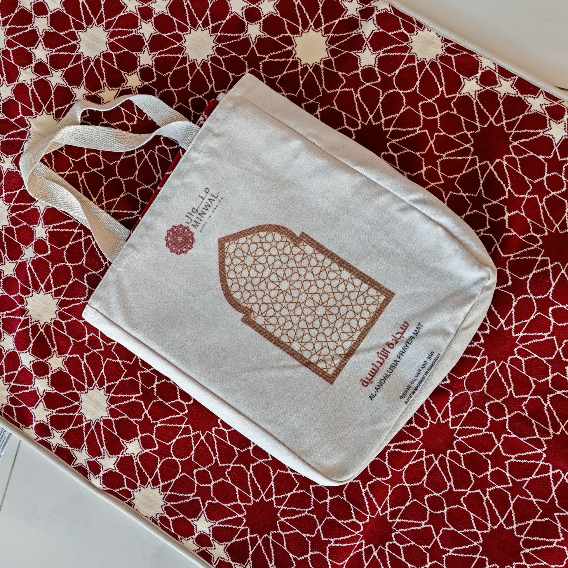 السجادة تأتي مع حقيبة أنيقة مطابقة للتصميم، مصنوعة بعناية لتضفي لمسة فخامة إضافية. الحقيبة عملية وخفيفة الوزن، تسهّل عليك حمل السجادة إلى المسجد أو أثناء السفر، كما تحافظ على نظافتها وجودتها لفترة طويلة. بفضل مقبضها المريح وتصميمها العصري، تصبح الحقيبة جزءًا جميلاً من هديتك أو استخدامك اليومي.