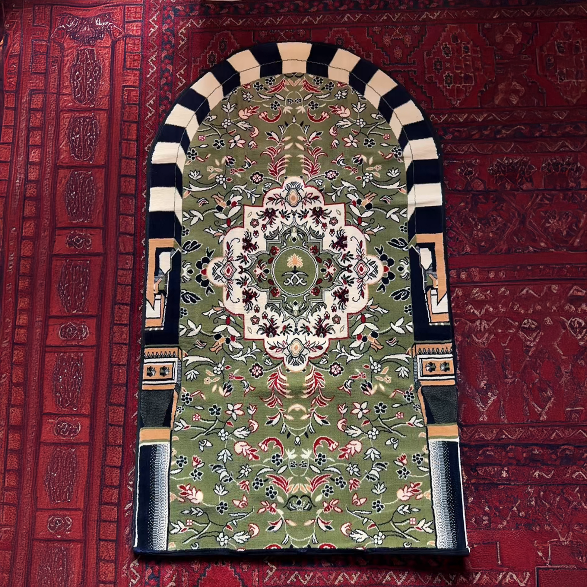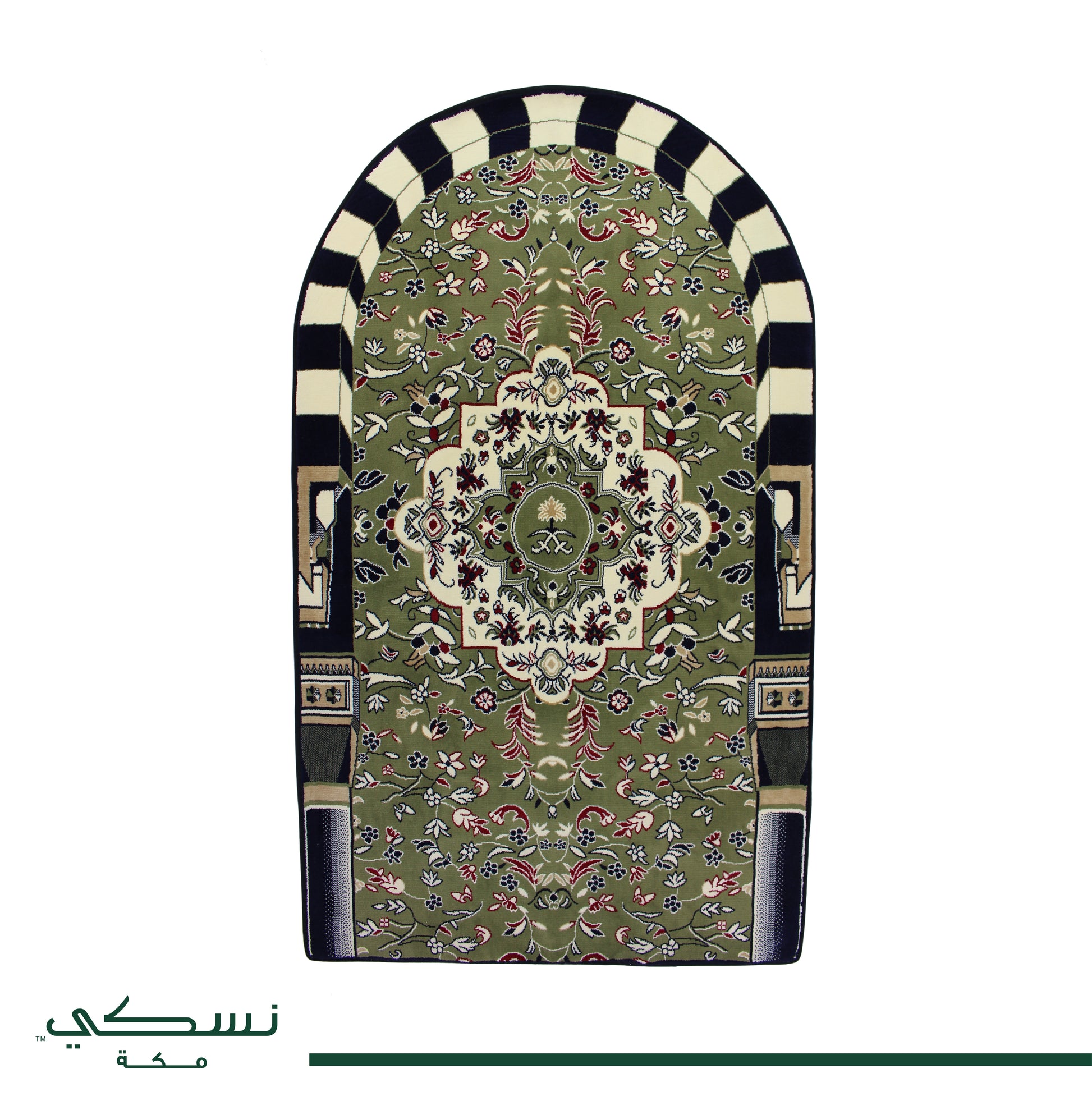 سجاد صلاة فاخر مصنوع بإتقان في مصنع منوال بالمدينة المنورة باستخدام أفضل الخيوط والتقنيات المتخصصة في صناعة السجاد والإحرامات.