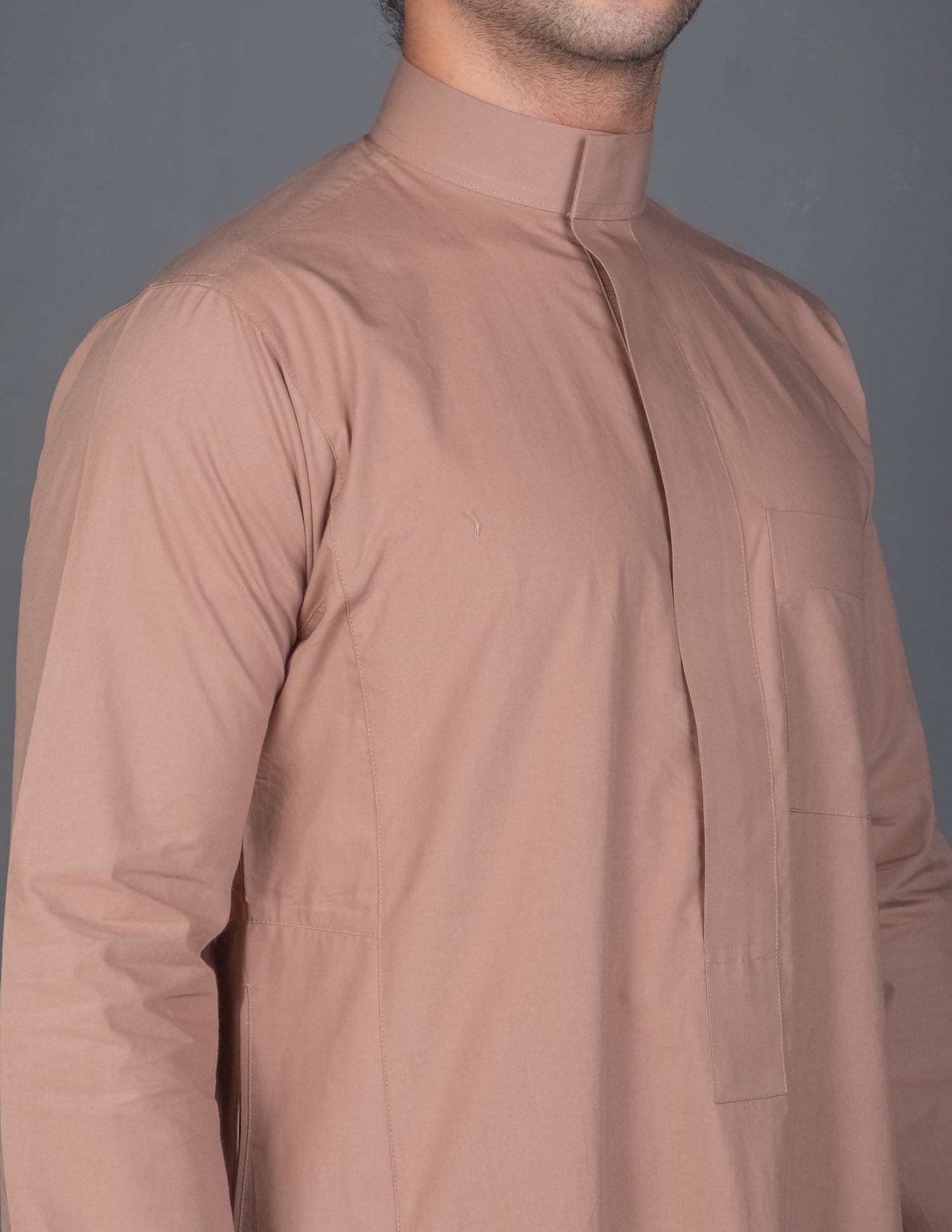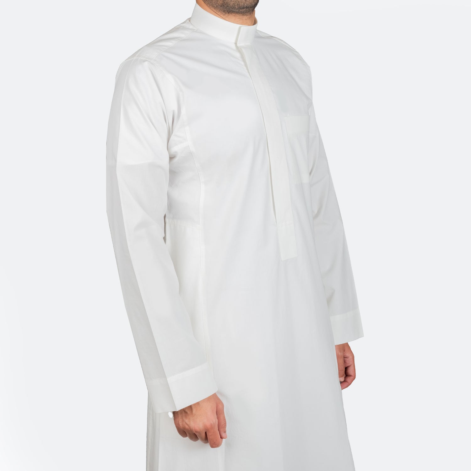 - الطراز: ثوب قطني كلاسيكي بأزرار واضحة في الصدر (بدون كبك)