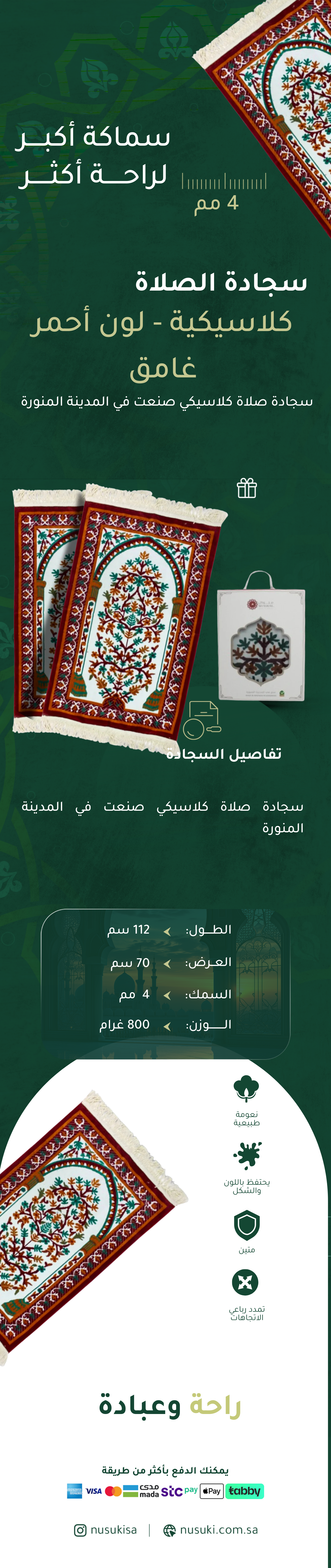 سجادة صلاة كلاسيكية - لون أحمر غامق