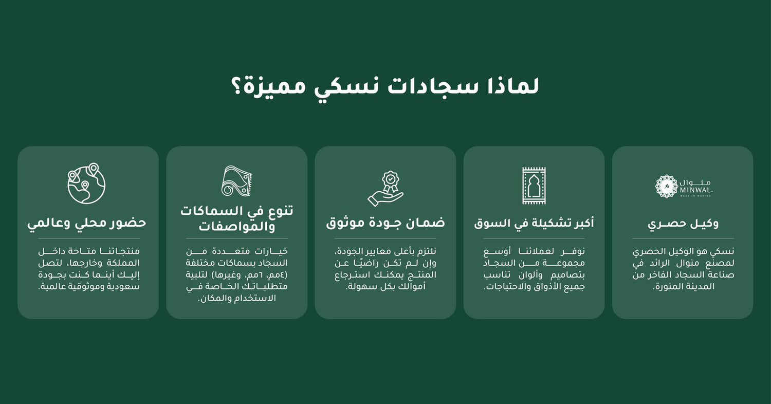• صنع بفخر في مصنع منوال في المدينة المنورة، المصنع الرائد في صناعة السجاد والإحرامات والمنتجات الإسلامية عالية الجودة.