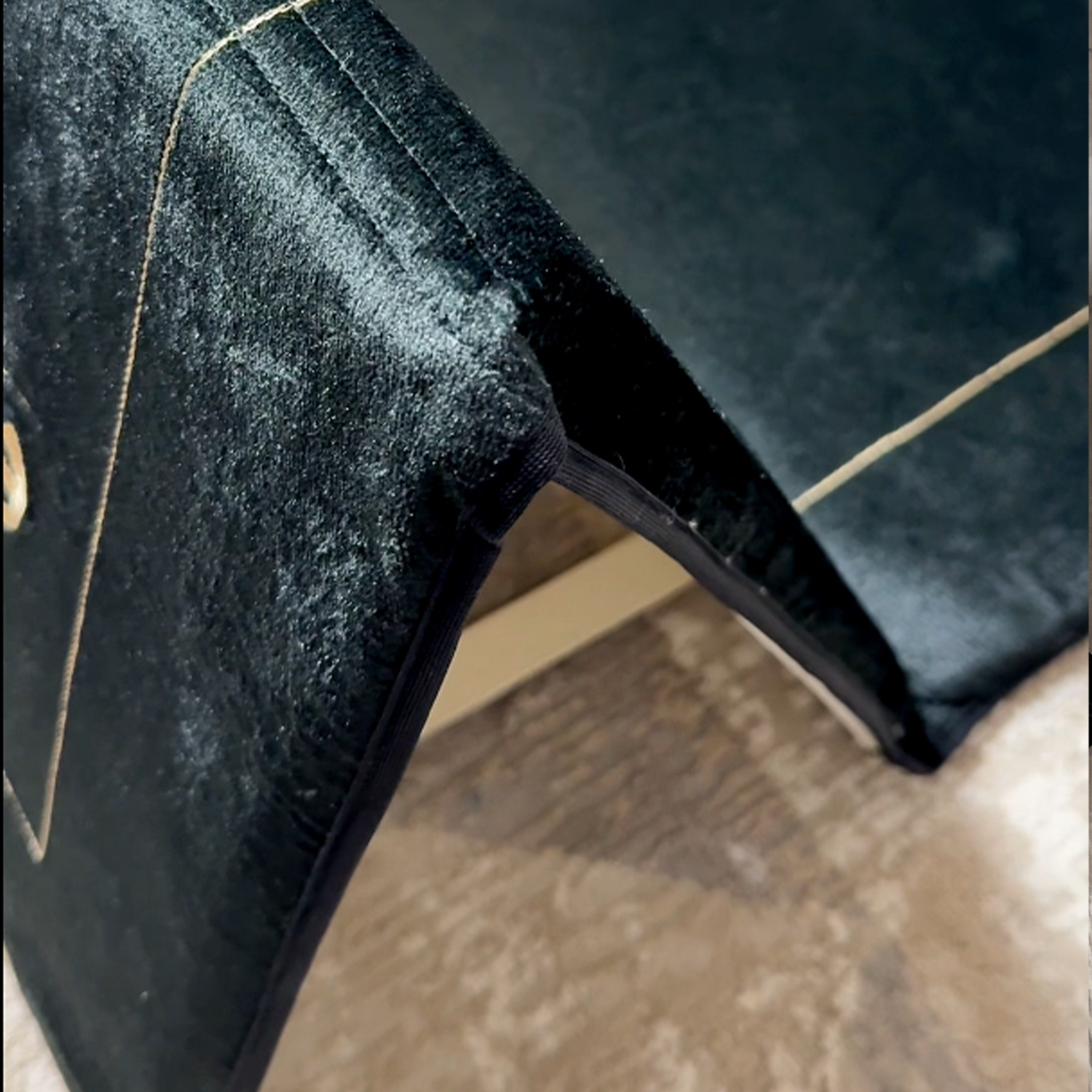 المسند مغطى بقماش مخملي فاخر، يُنصح بتنظيفه بقطعة قماش مبللة للحفاظ على جودته