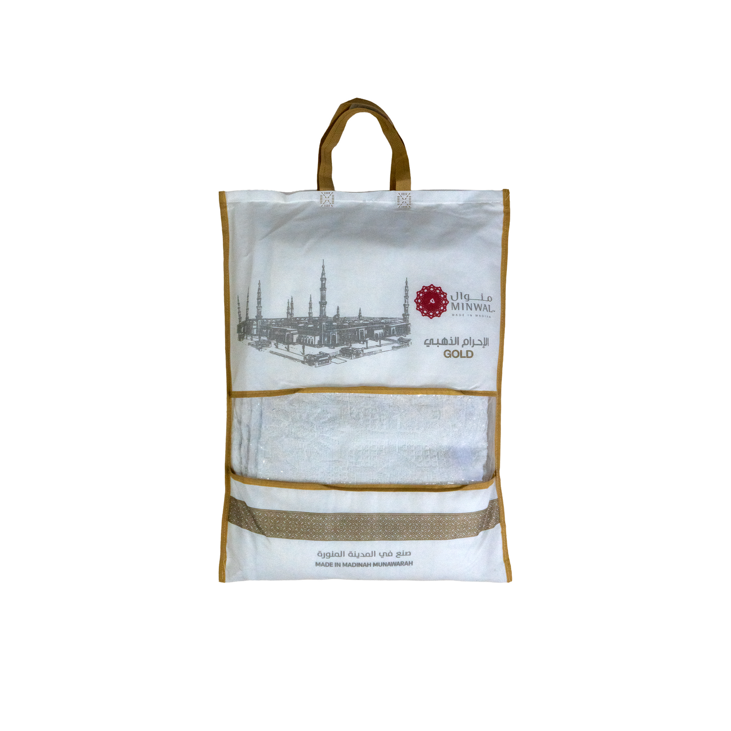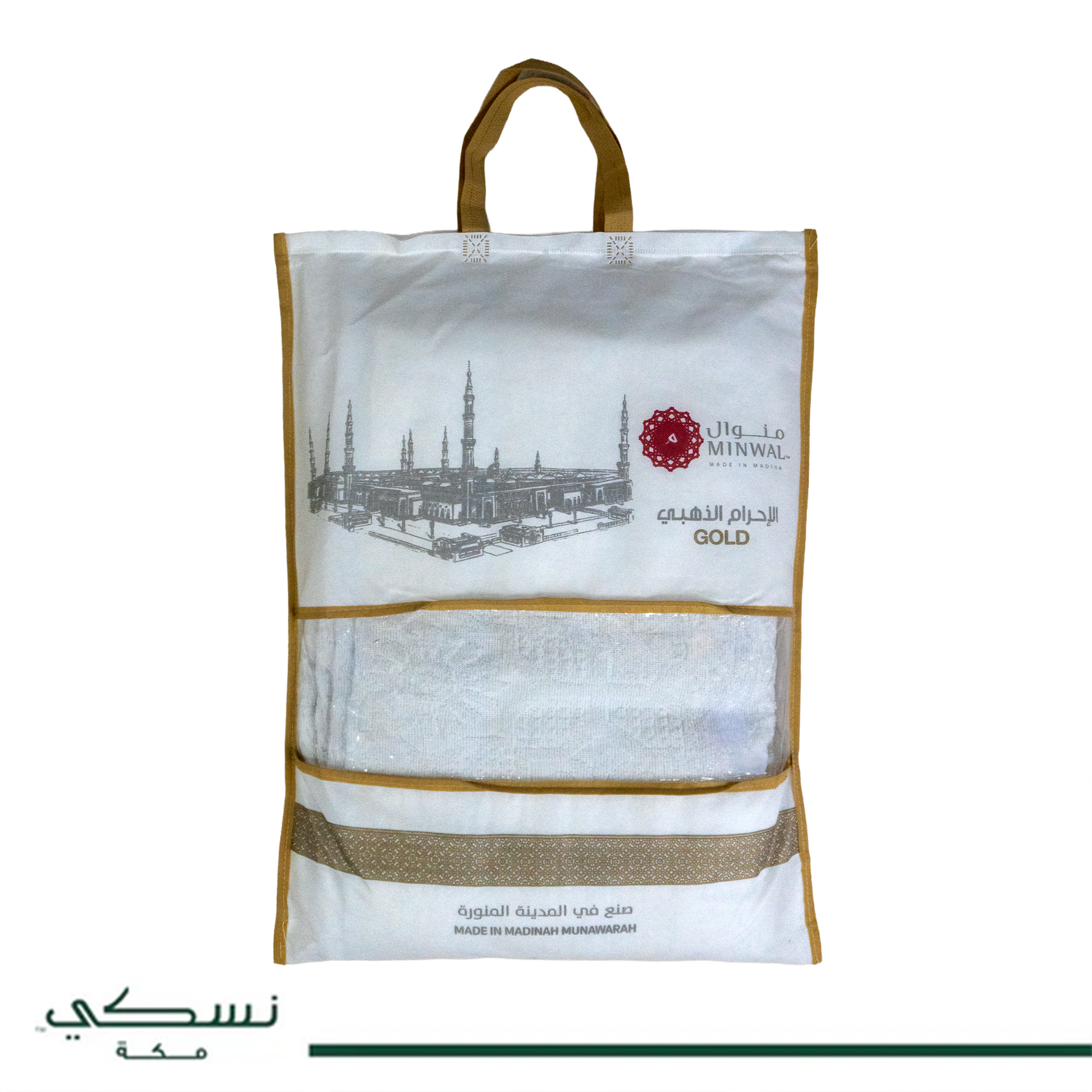 كل إحرام يأتي في تغليف أنيق وشنطة خاصة، مما يجعله مثاليًا للاستخدام المتكرر أو كهدية قيمة.