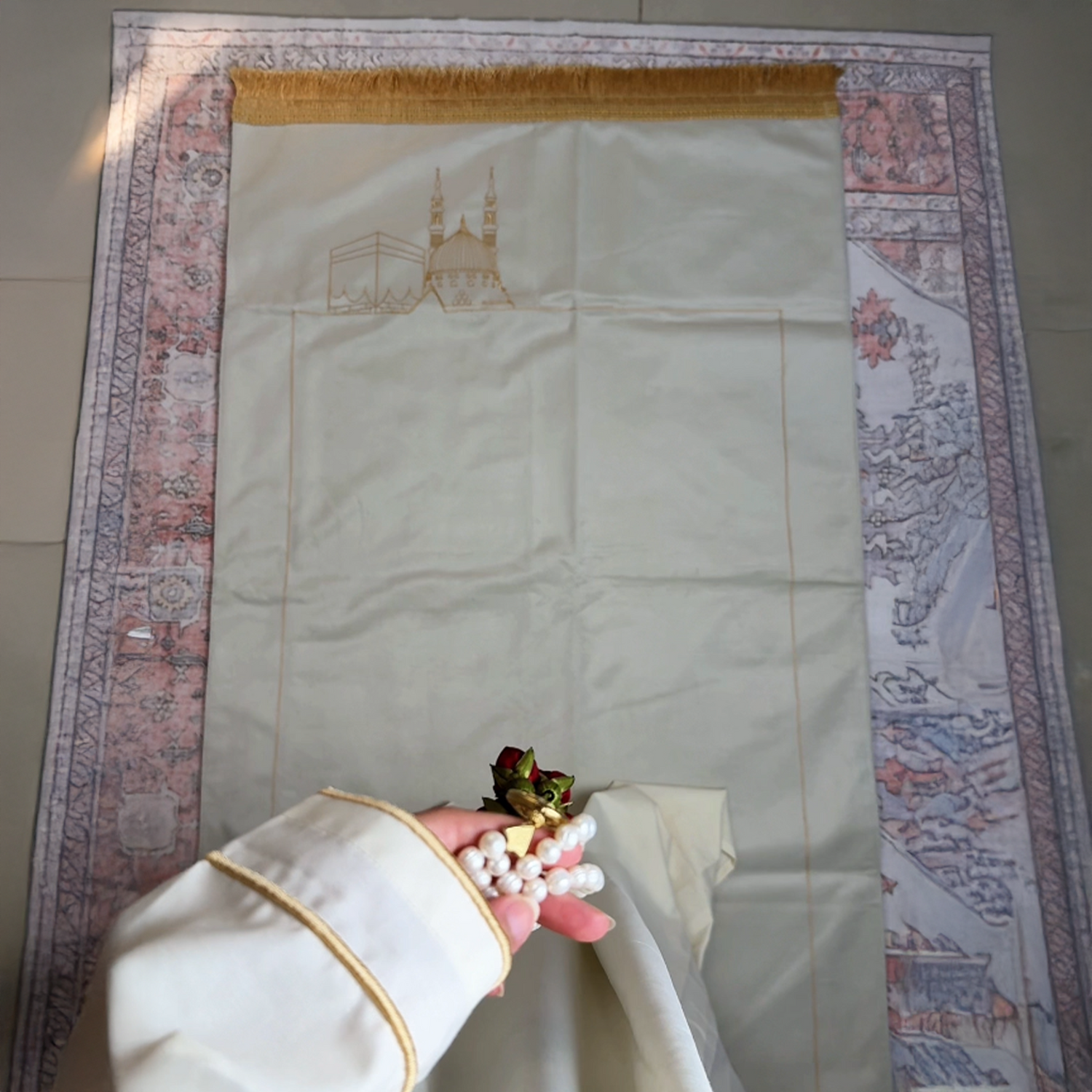 كل شرشف صلاة يأتي بتغليف مرتب وأنيق، مما يجعله مناسبًا للاستخدام الشخصي أو كهدية مميزة.