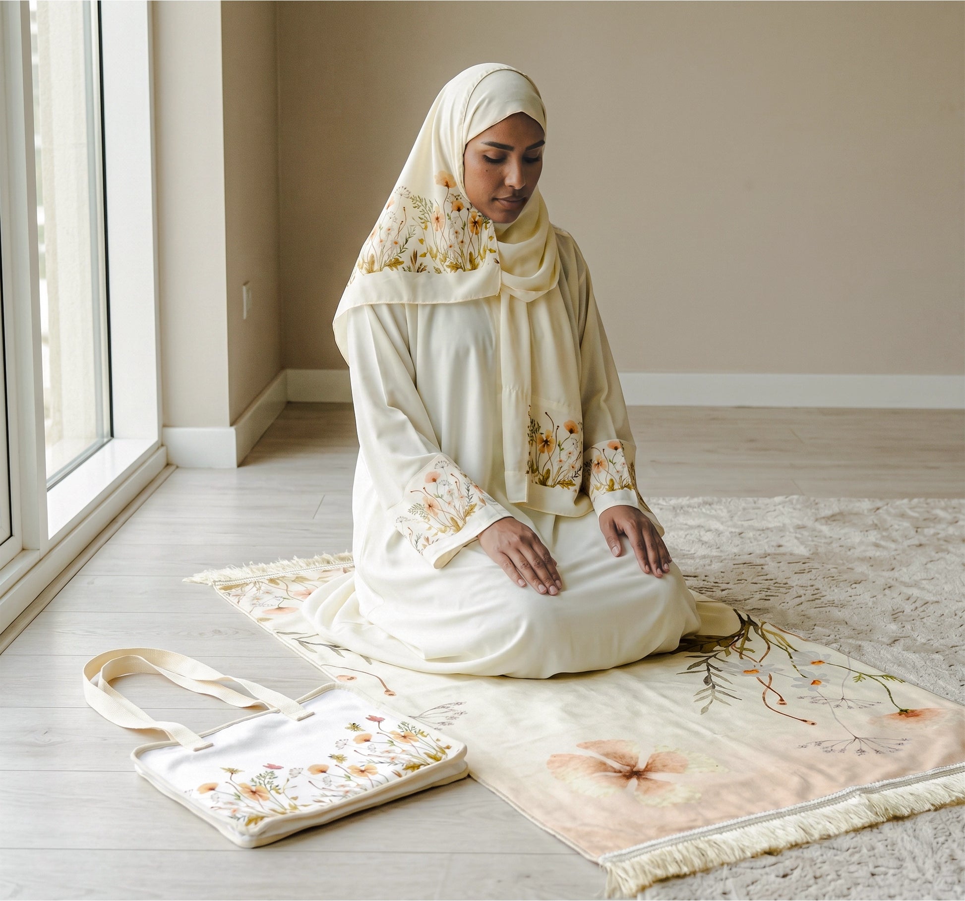 استقبلي الصلاة بلمسة من الجمال والسكينة مع طقم صلاة زهر اليقين من نسكي.