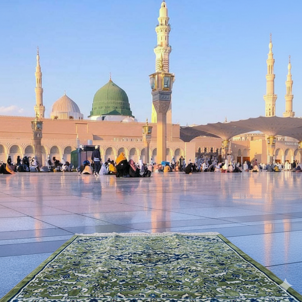 - تصميم يجمع بين سجاد الحرم المكي والنبوي ليمنحك إحساس الصلاة في الحرمين ويعزّز الخشوع.