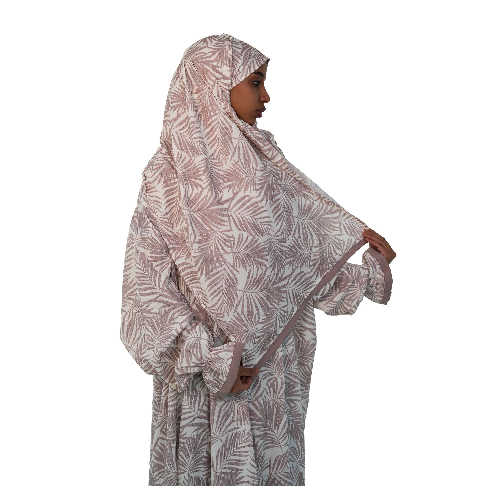 استشعري نسيم المدينة المنورة مع شرشف صلاة ريحان المميز. يتميز هذا الشرشف بقماش قطني بارد، مطبوع بنقوش نباتية تضفي شعوراً بالراحة. صُمم بعناية في مصنع منوال ليوفر لكِ تجربة صلاة مريحة بفضل قصته الواسعة وتفاصيله العملية.